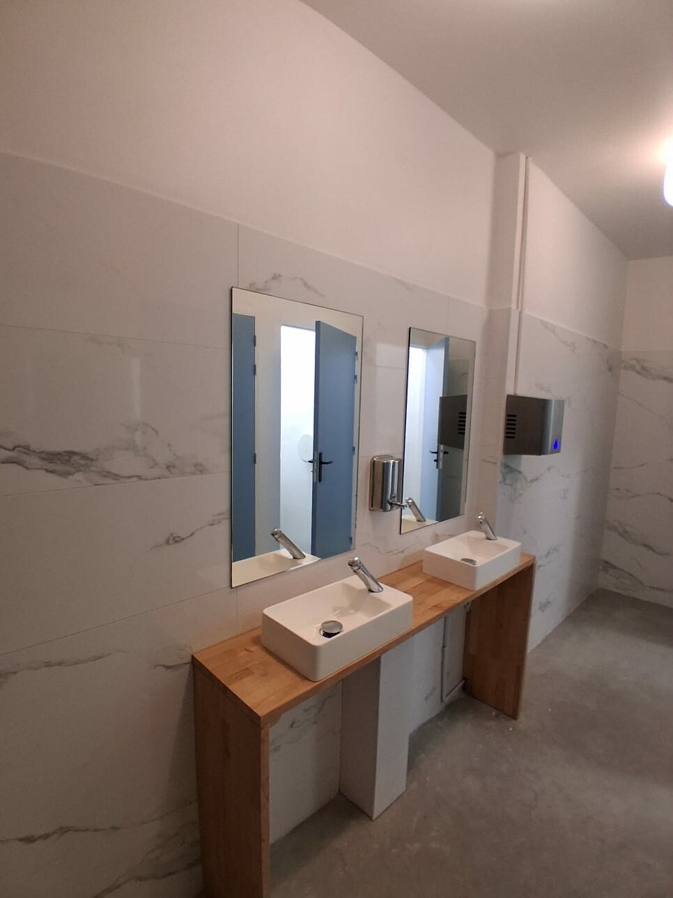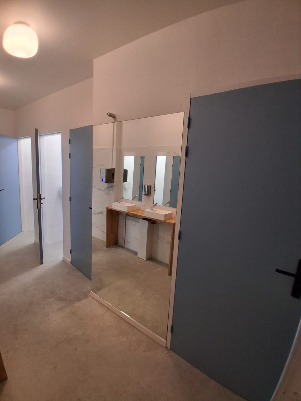 Plusieurs miroirs ont été installés dans les sanitaires et espaces communs, afin d’allier confort d’utilisation, esthétique et conformité aux normes de sécurité. La pose a été réalisée avec précision, dans le respect du cadre existant, pour un rendu discret et soigné.