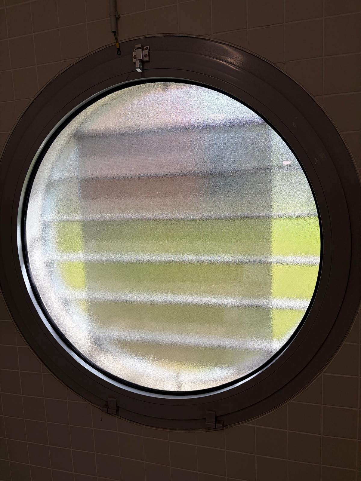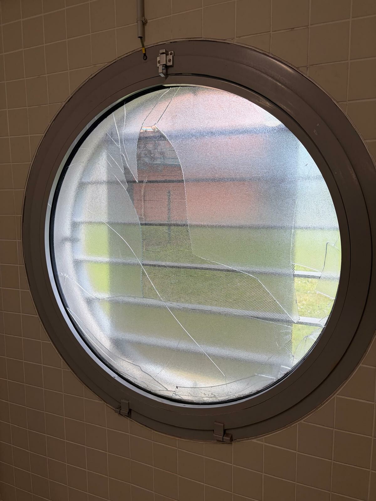 Vitrage à remplacer sur une fenêtre située dans les vestiaires du Campus Mazier